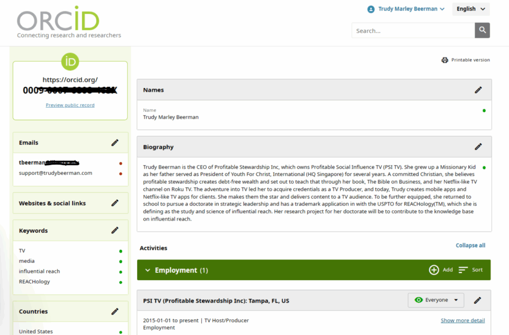 I am Dr. Trudy Beerman, The REACHologist™, founder of PSI TV and Nom de Valeur, and servant of the Most High God.